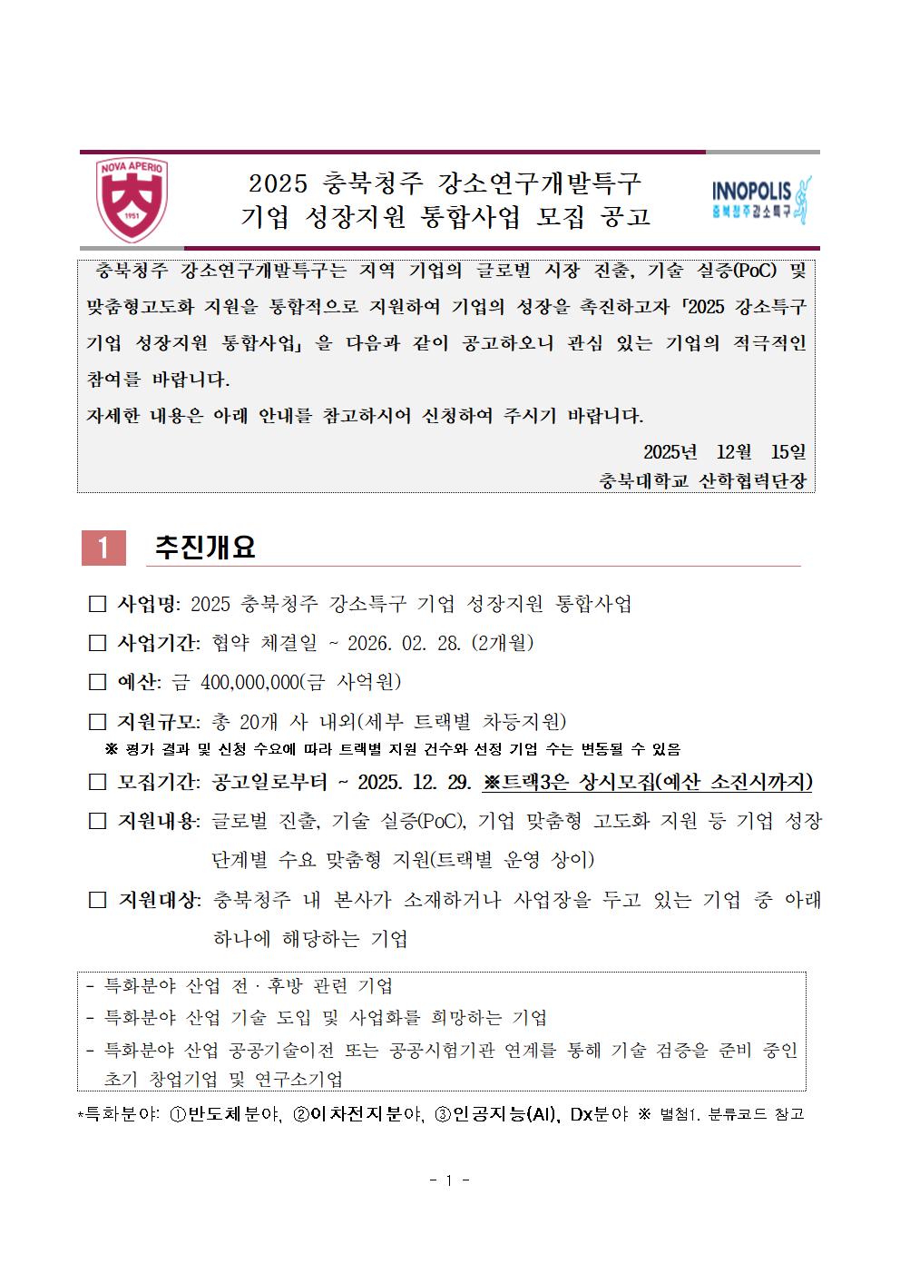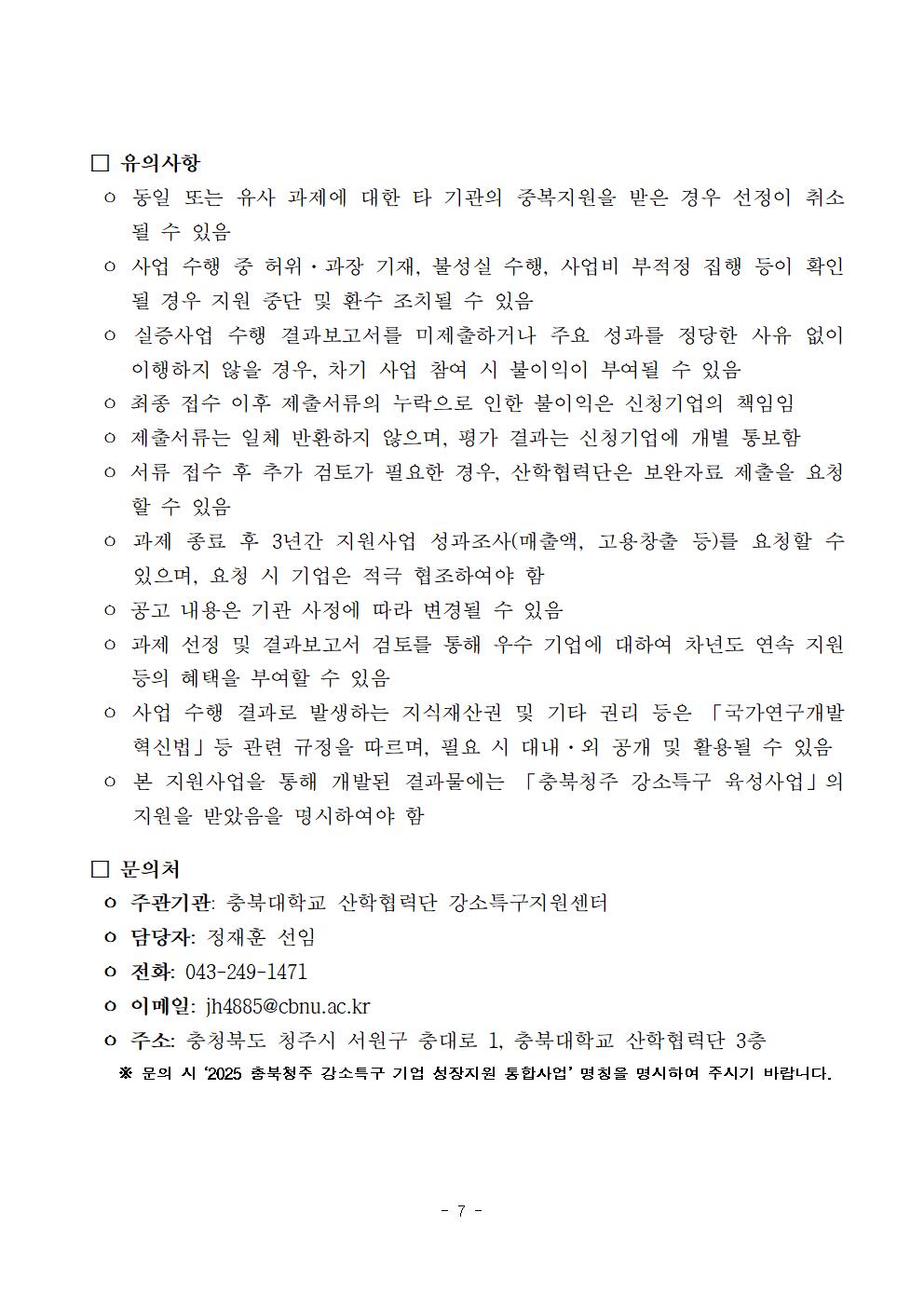 [충북청주강소특구] 2025 충북청주 강소특구 기업 성장지원 통합사업 모집 공고.zip